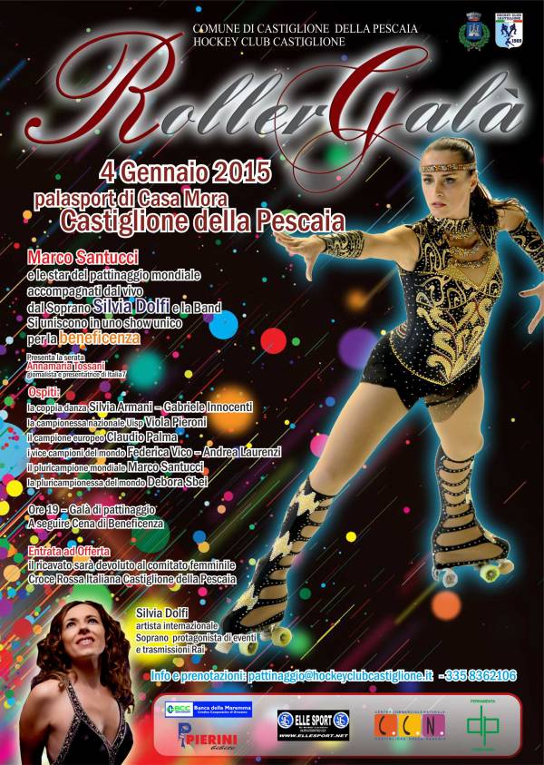 Domenica 4 gennaio 2015 a Castiglione della Pescaia nel Palazzetto dello sport Casamora alle ore 19,00 avrà luogo il Roller Gala 2015. Spettacolo al quale parteciperanno le star del pattinaggio mondiale accompagnate dal soprano Silvia Dolfi, a seguire cena di beneficenza. Il ricavato sarà devoluto al Comitato Femminile Croce Rossa Italiana di Castiglione della Pescaia.